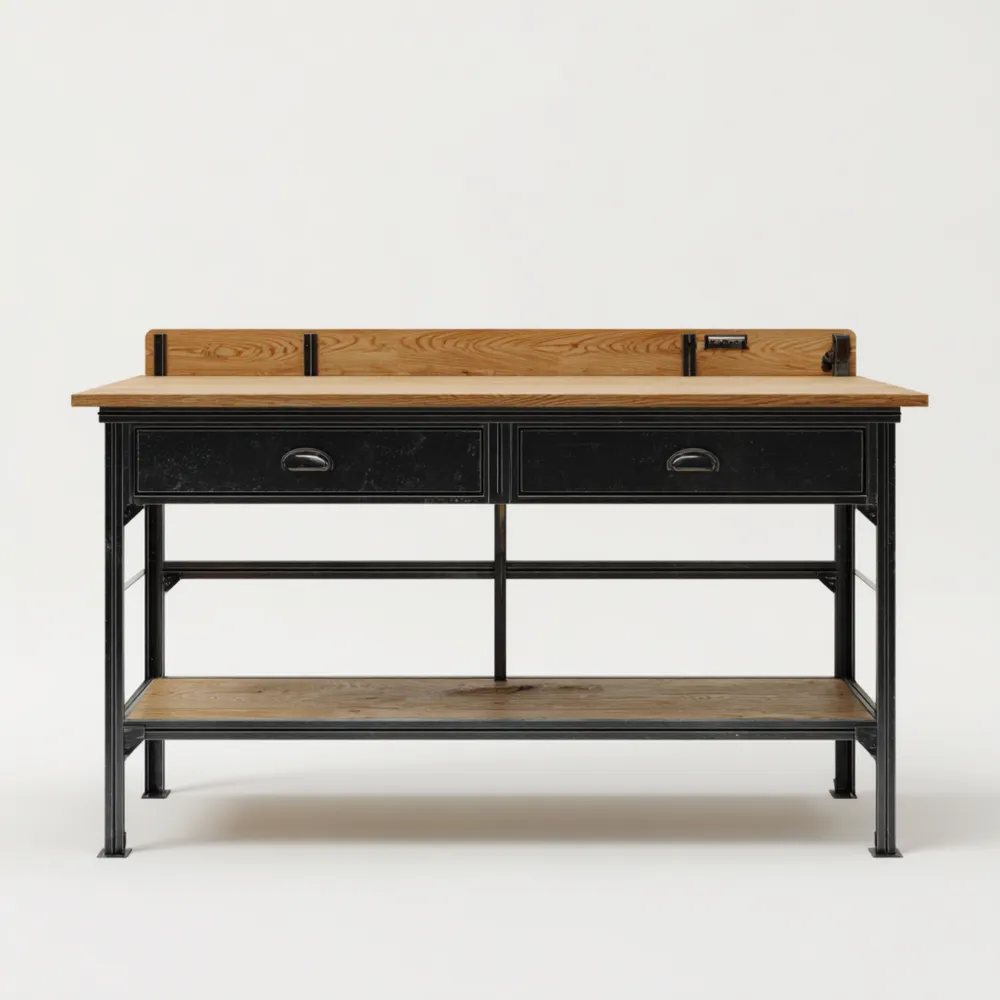 Material und VerarbeitungGefertigt aus massivem Holz und stabilem Metallrahmen in Schwarz, ist diese Werkbank langlebig und strapazierfähig.
